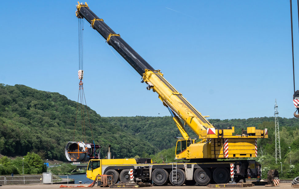 主钩固定不动,各节臂及第五支腿均回收利用及时,五支腿盘固定不动牢固。